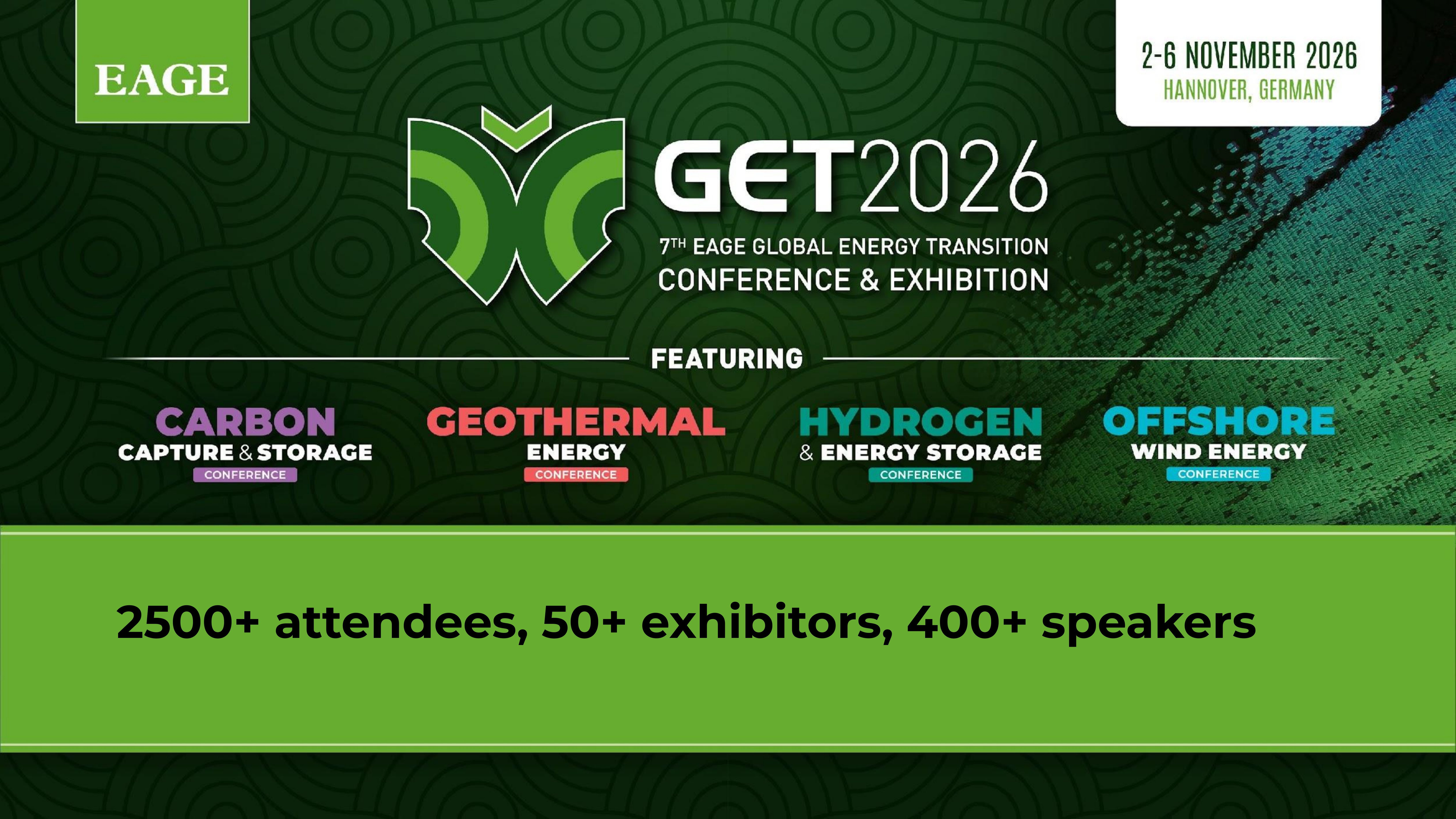 The 7th EAGE Global Energy Transition Conference & Exhibition (GET 2026) is scheduled to be held in Hannover, Germany, from November 2-6, 2026.